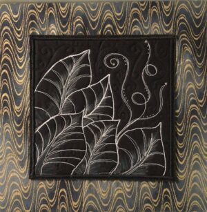 Second in a series of quilted leaves, highlighted by background quilting and 3 Swarovski crystals.