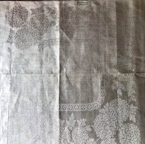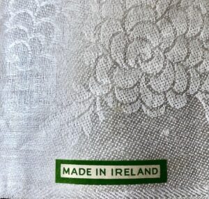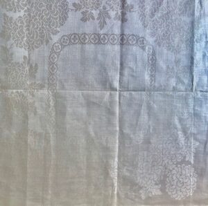 Authentic Irish Linen from Ireland. Damask panels are 21″x 21″ and there are 12, probably for napkins.